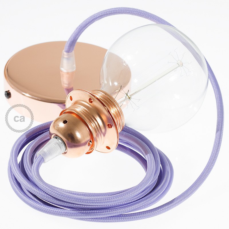 Sastavi viseću lampu sa sjenilom s tekstilnim kabelom RM07 Lila Okrugli rajon. Odaberite boju grla i rozete, dužinu kabela i da li želite već sastavljenu lampu ili u kompletu DIY "sastavi sam".