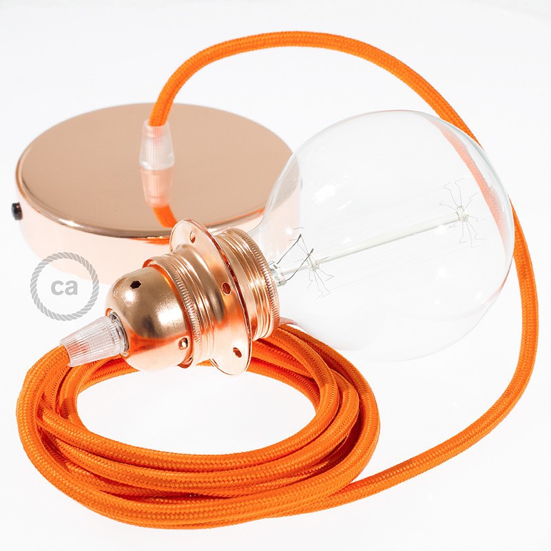 Sastavi viseću lampu sa sjenilom s tekstilnim kabelom RM15 Narančasti Okrugli rajon. Odaberite boju grla i rozete, dužinu kabela i da li želite već sastavljenu lampu ili u kompletu DIY "sastavi sam".