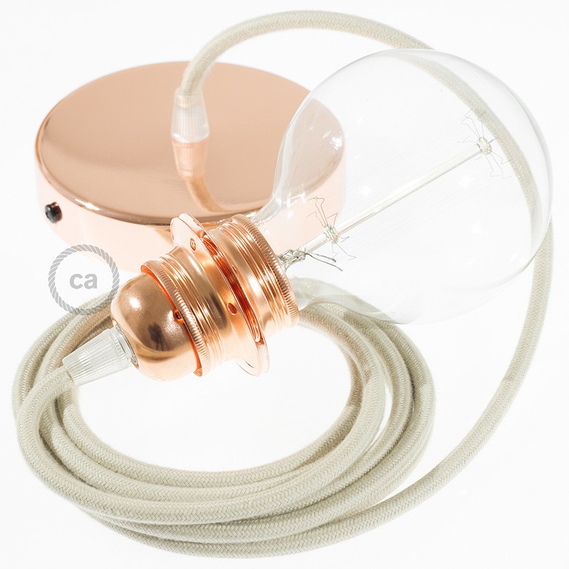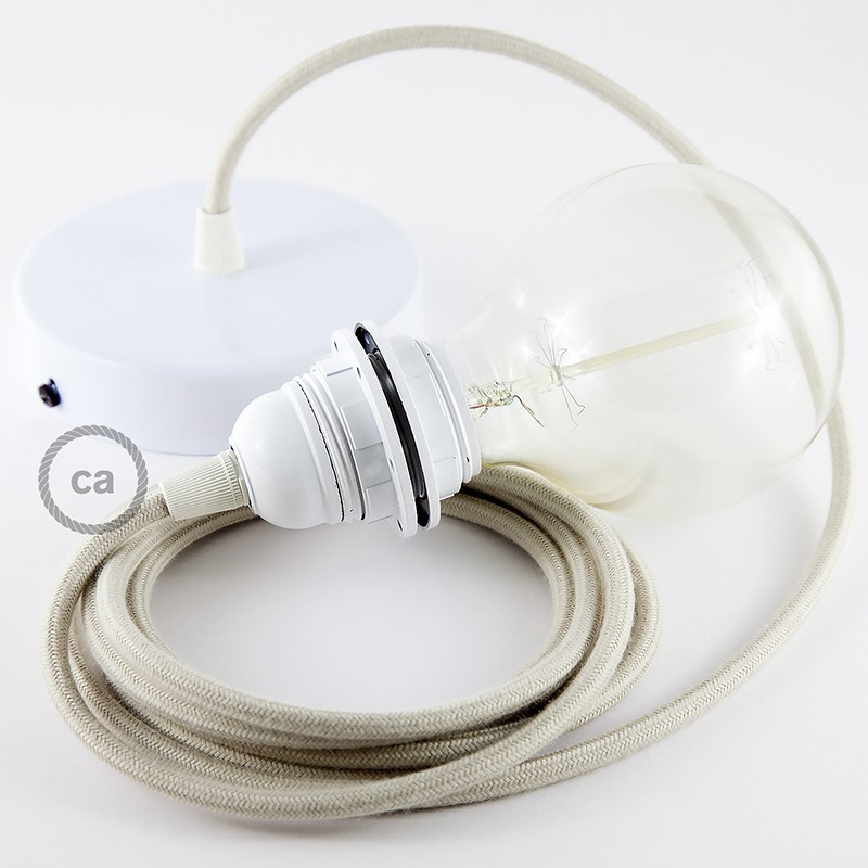 Sastavi viseću lampu sa sjenilom s tekstilnim kabelom RC43 Kremasti Okrugli Pamuk. Odaberite boju grla i rozete, dužinu kabela i da li želite već sastavljenu lampu ili u kompletu DIY "sastavi sam".
