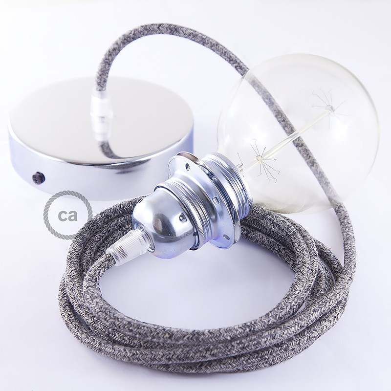 Sastavi viseću lampu sa sjenilom s tekstilnim kabelom RS81 Crni Okrugli Pamuk I Prirodni Lan. Odaberite boju grla i rozete, dužinu kabela i da li želite već sastavljenu lampu ili u kompletu DIY "sastavi sam".