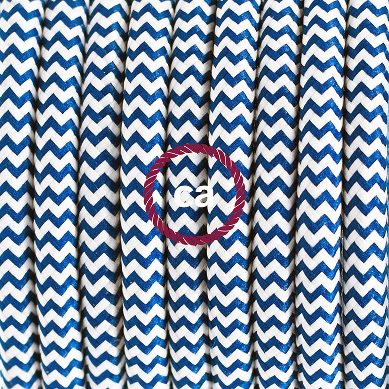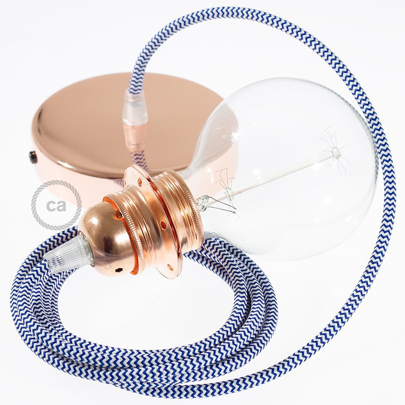 Sastavi viseću lampu sa sjenilom s tekstilnim kabelom RZ12 Cik-Cak Plavi Okrugli rajon. Odaberite boju grla i rozete, dužinu kabela i da li želite već sastavljenu lampu ili u kompletu DIY "sastavi sam".