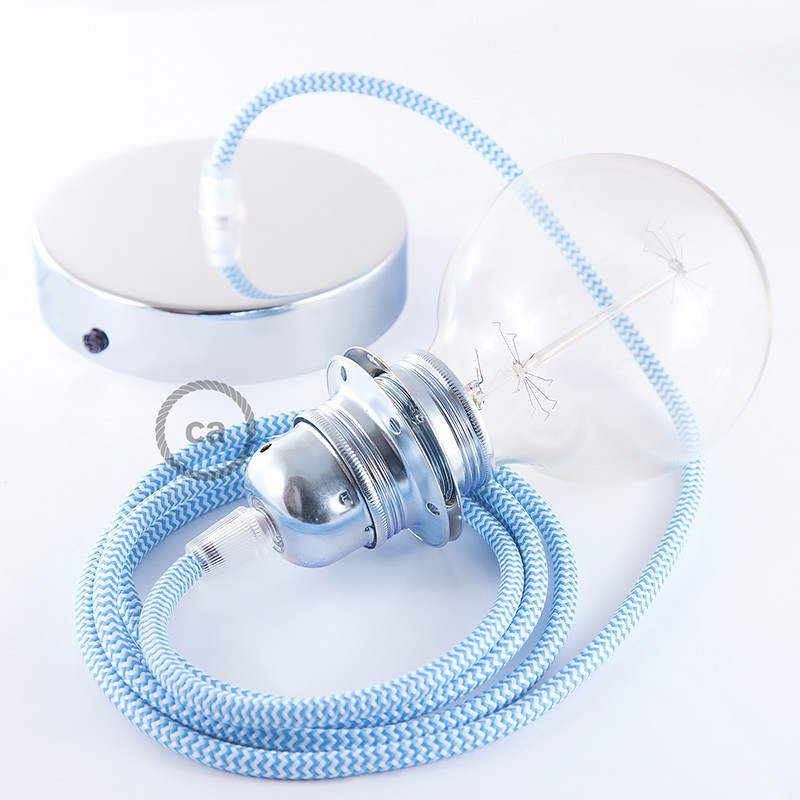 Sastavi viseću lampu sa sjenilom s tekstilnim kabelom RZ11 Cik-Cak Tirkizni Okrugli rajon. Odaberite boju grla i rozete, dužinu kabela i da li želite već sastavljenu lampu ili u kompletu DIY "sastavi sam".