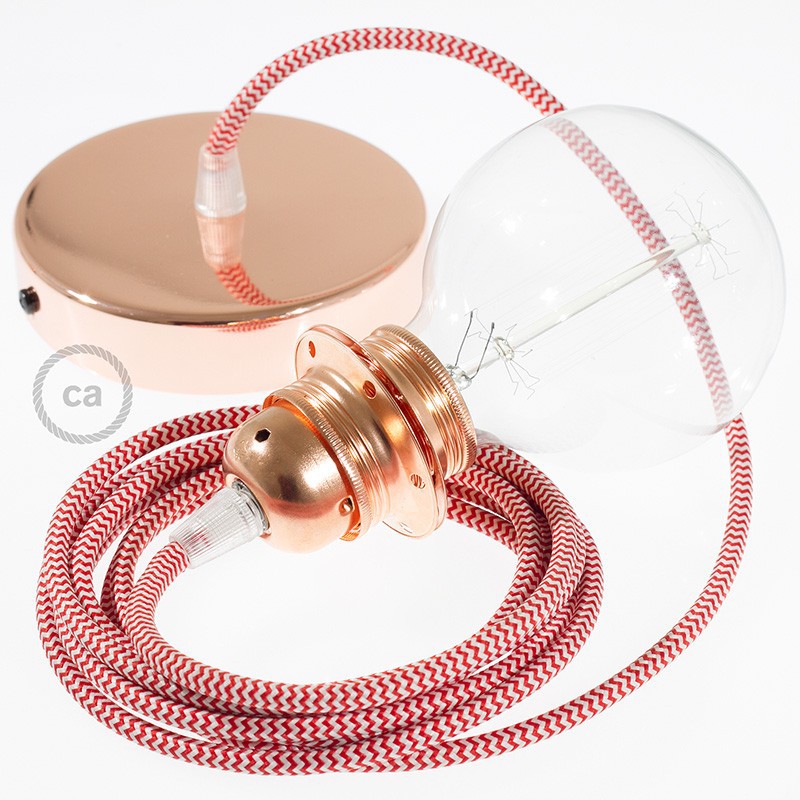 Sastavi viseću lampu sa sjenilom s tekstilnim kabelom RZ09 Cik-Cak Crveni Okrugli rajon. Odaberite boju grla i rozete, dužinu kabela i da li želite već sastavljenu lampu ili u kompletu DIY "sastavi sam".