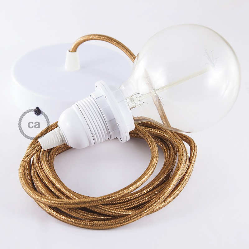Sastavi viseću lampu sa sjenilom s tekstilnim kabelom RL22 Blještavo Bakreni Okrugli rajon. Odaberite boju grla i rozete, dužinu kabela i da li želite već sastavljenu lampu ili u kompletu DIY "sastavi sam".