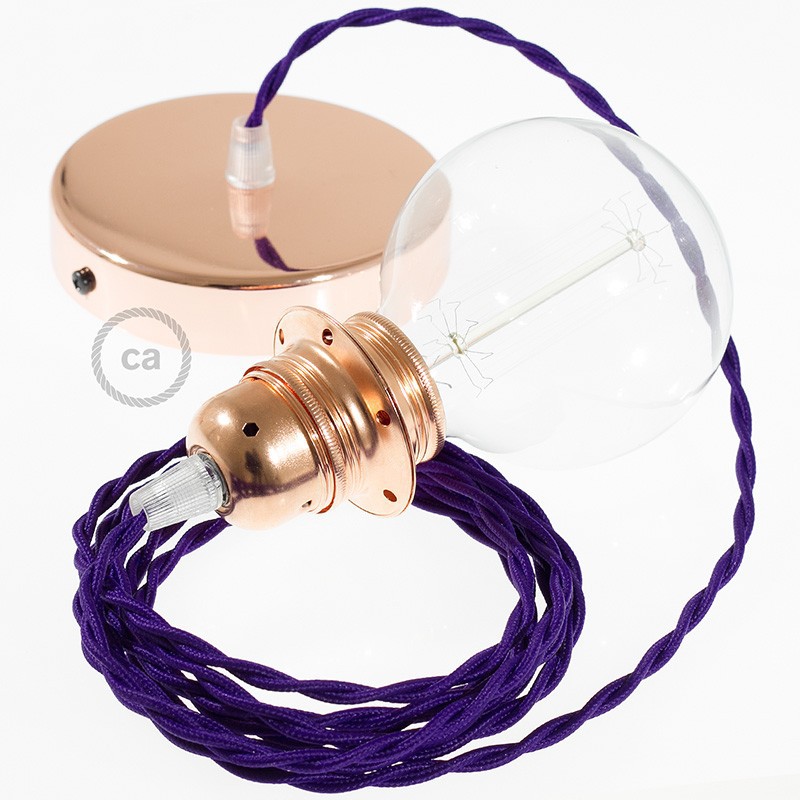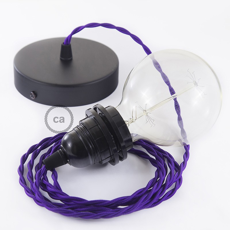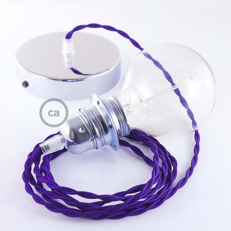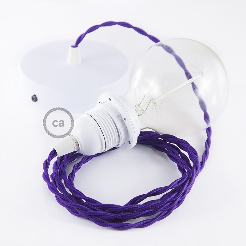 Sastavi viseću lampu sa sjenilom s tekstilnim kabelom TM14 Purpurni Zamotan rajon. Odaberite boju grla i rozete, dužinu kabela i da li želite već sastavljenu lampu ili u kompletu DIY "sastavi sam".