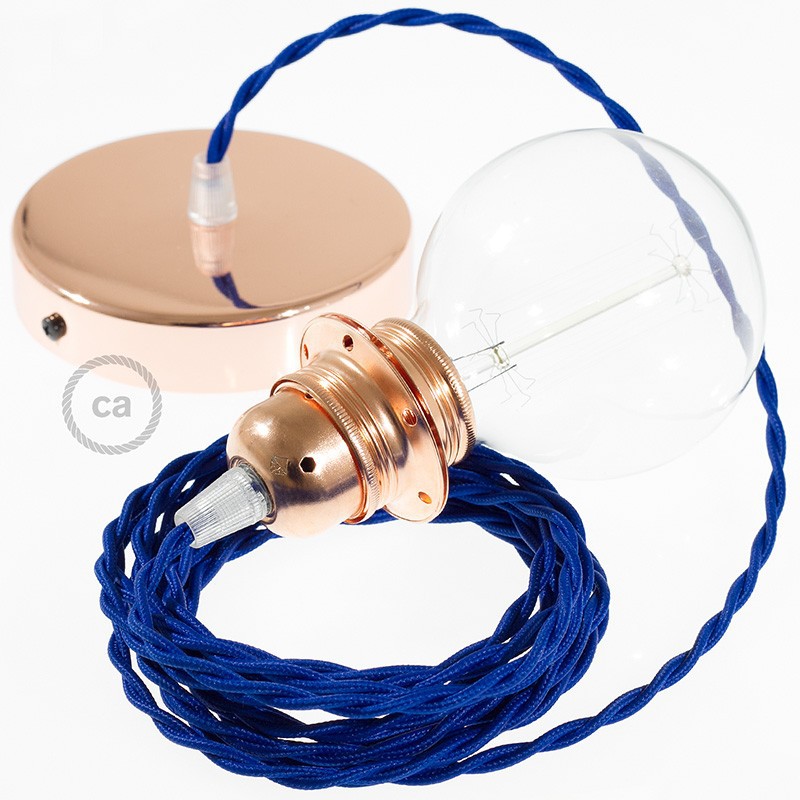 Sastavi viseću lampu sa sjenilom s tekstilnim kabelom TM12 Plava Zamotan rajon. Odaberite boju grla i rozete, dužinu kabela i da li želite već sastavljenu lampu ili u kompletu DIY "sastavi sam".
