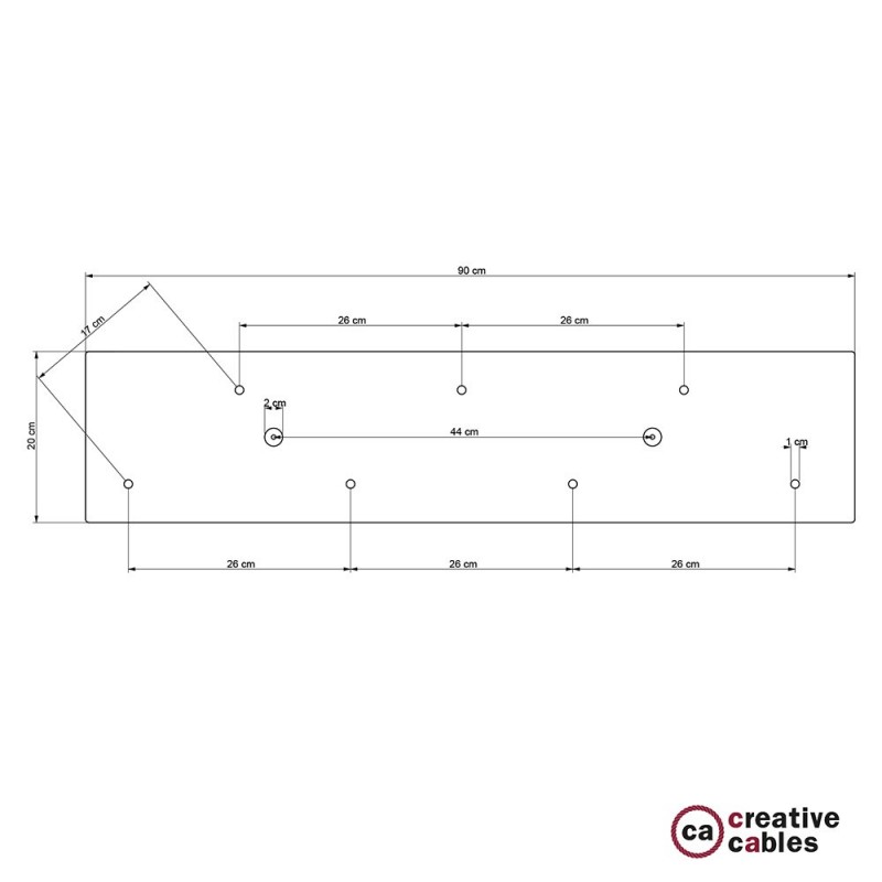 Pravokutna 90x20cm stropna rozeta s 7 izlaza je pogodno za kreiranje viseće lampe.