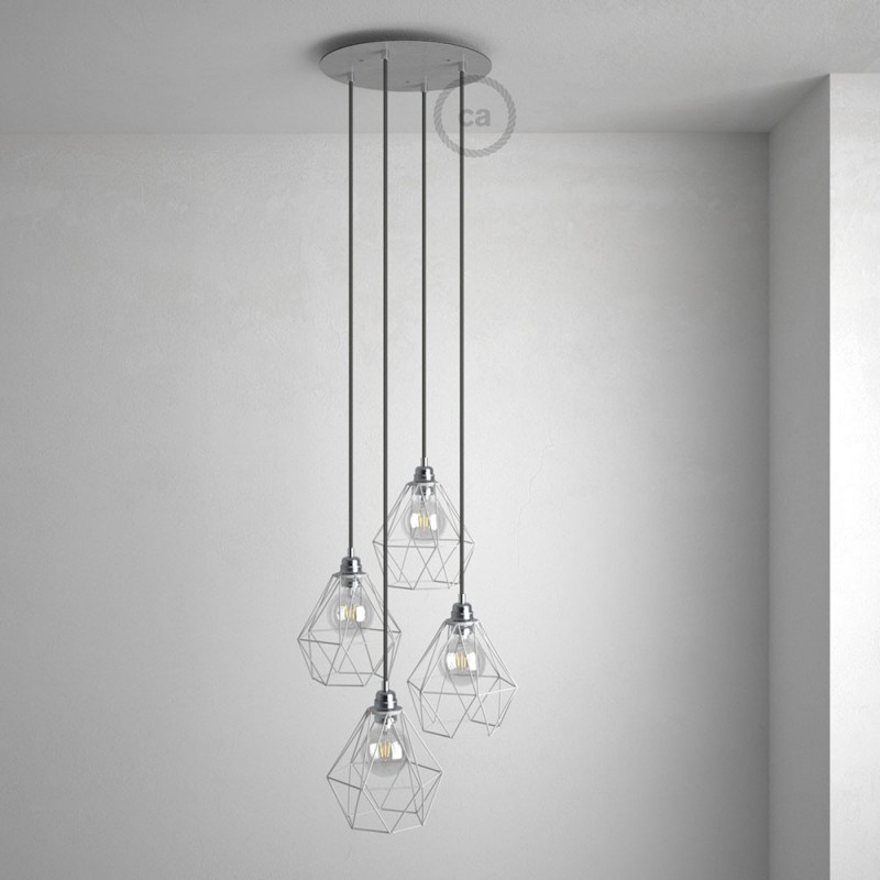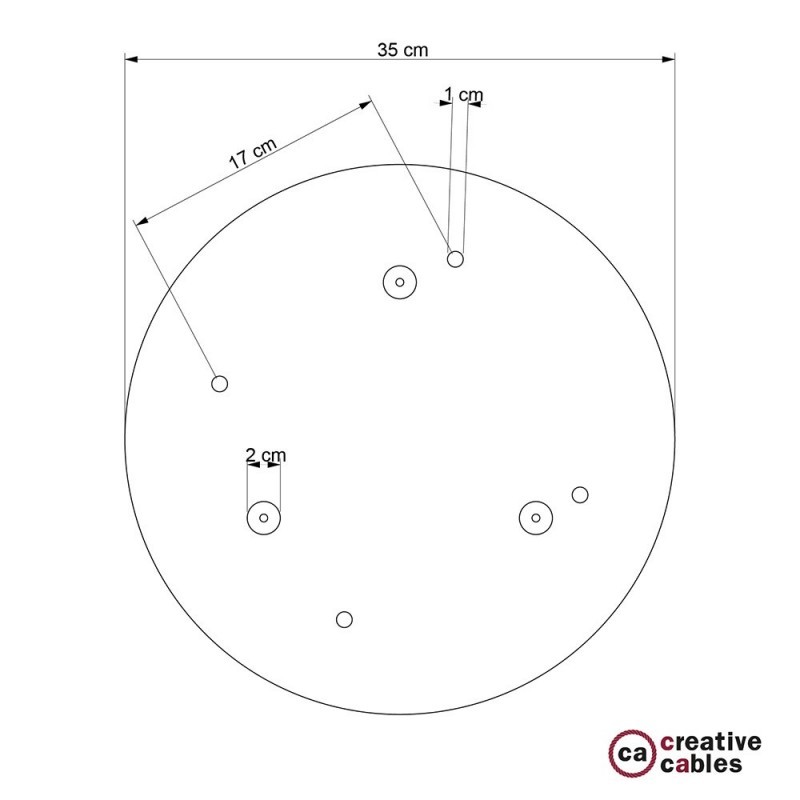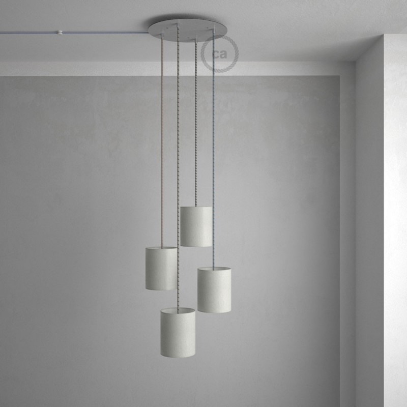 XXL zidna rozeta s 4 otvora vam omogućuje da kreirate svoju osobnu viseću lampu. 35cm promjer stropne rozete i odgovarajući razmak između otvora omogućuje vam da svoju viseću lampu ukrasite s dodacima kao što su sjenila i kavezi za lampe.