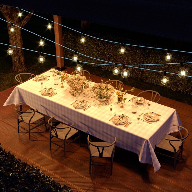 S ovim živim tkaninama i bojama, u ponudi imamo i sve ostalo što vam je potrebno za jednostavno kreiranje savršene svjetlosne instalacije za svaku prigodu ili događaj. Set uključuje Schuko utikač, kuku i E27 grla za žarulje. Kuka vam omogućava da svoje nizove žarulja objesite kako vama odgovara, možete ih križati ili postaviti paralelno, a kad završe tople večeri, lako ih možete otkačiti, iskopčati i pospremiti.